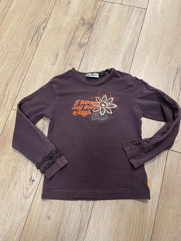 Красива коричнева кофточка з довгим рукавом на дівчинку 3-4 роки у відмінному стані. Довжина виробу по спинці від плеча 39 див, ПОГ 29 див, довжина рукава 37 див. Тканина тягнеться. Модель 4289