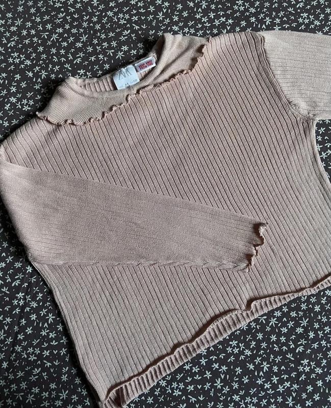 Пудрова кофтинка в рубчик з подовженою спинкою, комірцем і розрізами по бокам Більше речей інст butichek