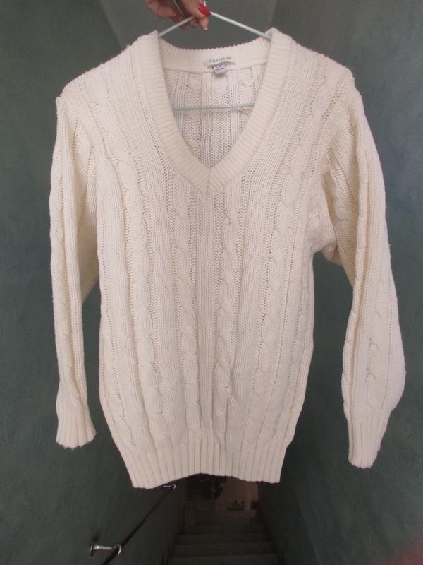 Кофта вязана Підліток Колір молочний ПОГ 50 см Довжина 64 см Рукав 50 см Плечі приспущені 41 см Приблизно на 12 років, не більше на ріст 146