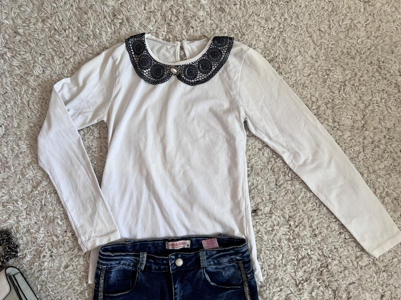 Стильна біла кофта в класичному стилі з мереживом та брошкою