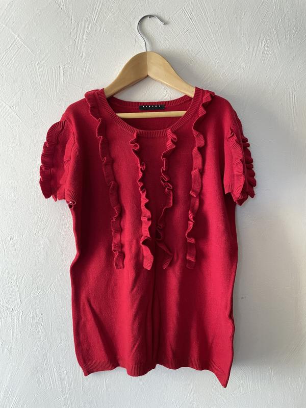 Червона кофтинка Sisley. На 11/12 років, 160 см. Склад: 45% - віскоза, 27%- бавовна, 25%- поліамід 3%- кашемір. У дуже гарному стані