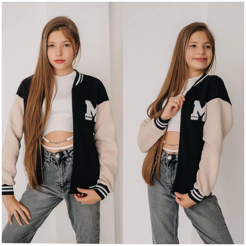 Бомбер для девочки, мальчику также подойдет Ткань турецкая трехнить на флисе, отличное качество🤩 На рукавах манжети На молнии буква может отличаться 140-1 шт 146-3 шт 152-2 шт 158-нет 🌷140-длина 58, пог 47,рукав от горловины 61 🌷146-длина 60,пог 47,рукав от горловины 64 🌷152-длина 62, пог 52,рукав от горловины 66