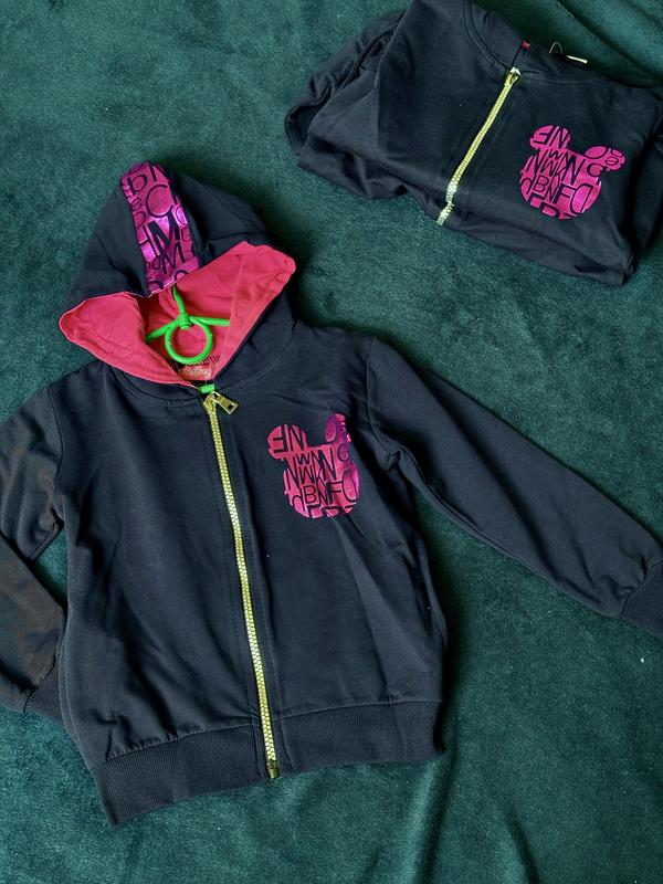 Темно синя кофта із застібкою, карманами, капюшоном та малиновим принтом під мікі мауса😎 Двонитка, крутий варіант на осінь та весну. В наявності 3 розміри: на зріст 104см; 110см; 116см Бавовна 95% та еластан 5% Турція