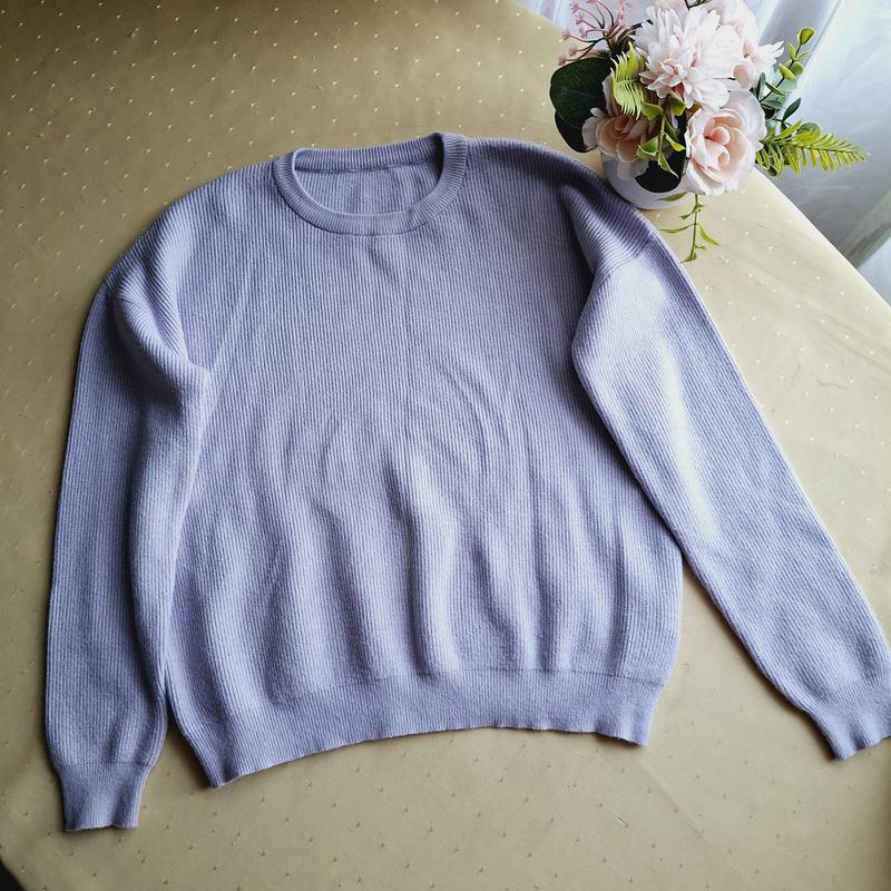 В ідеальному стані. М'який приємний до тіла. Колір бузковий, на фото поганий вийшов. Заміри довжина 47 рукав від шії 60 грудь 45 Сидить вільно. Оверсайс
