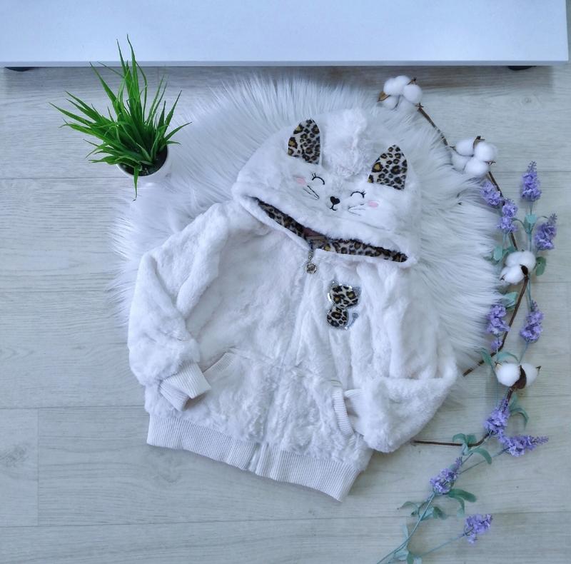 Хутряна кофтинка, гарна , м'яка 💗💗🤩🤩💗 По всій дожині є блискавка , дві діючі кишені , на рукавчиках та понизу є манжети , на капюшоні ну дуже милі вушка 😊😊😊😊😊 малюнок нашивка Тканина: хутро (100% поліестер) підкладка велюр Виробник: Seagull р.3-4р-2шт р.4-5р-2шт ЗАМІРИ ⤵ +/- 1-2см!!! р.3-4р-довжина від плеча 37 см/ПОГ 32 см/рукав 34 см р.4-5р-довжина від плеча 39 см/ПОГ 32 см/рукав 35 см