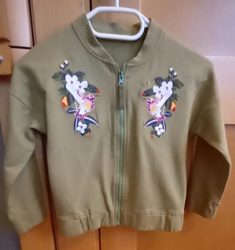 Кофта мастерка спорт стиль оливковая с вишивкою 5-6 років