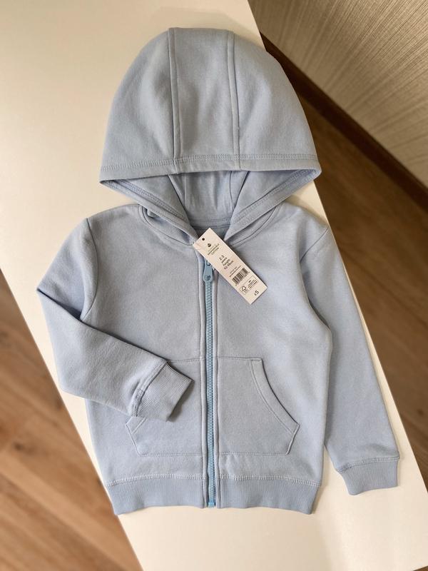 Тепленька кофтинка George для дівчинки на замку з капюшоном в гарному ніжно блакитному кольорі, розмір 2-3 роки. Довжина 40,5 см, рукав від плеча 35 см.
