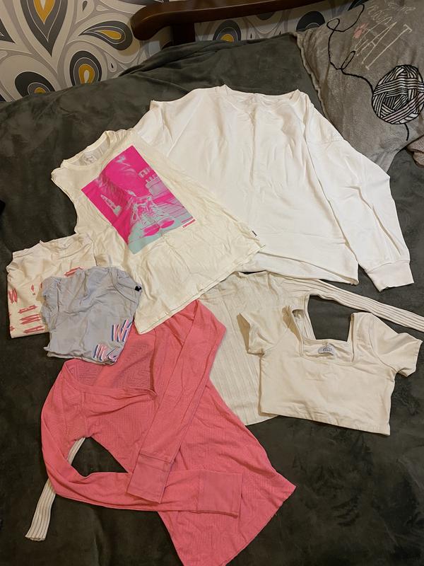 Топи , футболки , кофти Різні розміри від xs - L Дефекти у вигляді плям , десь може бути непомітна дірочка Бренди : converse , oh Polly , bershka , sinsay , river island 7 речей Ціна за все разом