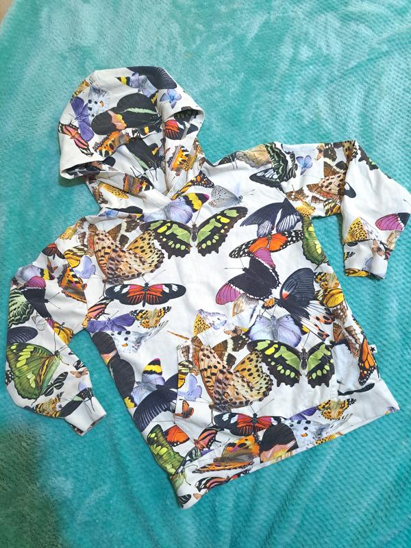 Гарна кофта з кишенею та капюшоном, з принтом метелики, стан ідеальний.