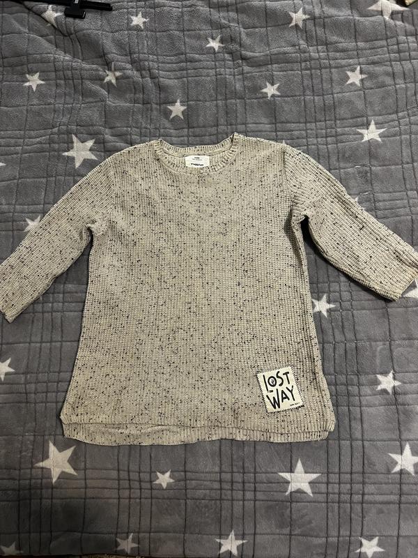 Бежевая, вязаная кофта с черными точками. В хорошем состоянии, без повреждений.
