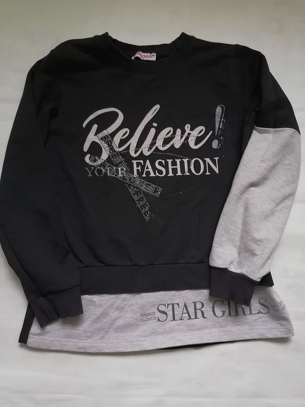 Стильная и комфортная кофточка. Свободного кроя, украшена стразами. Красиво сочетается с любимым образом. Трикотаж двунитка, без утепления. На рукавчиках манжеты. Дополнительные фото и замеры за.