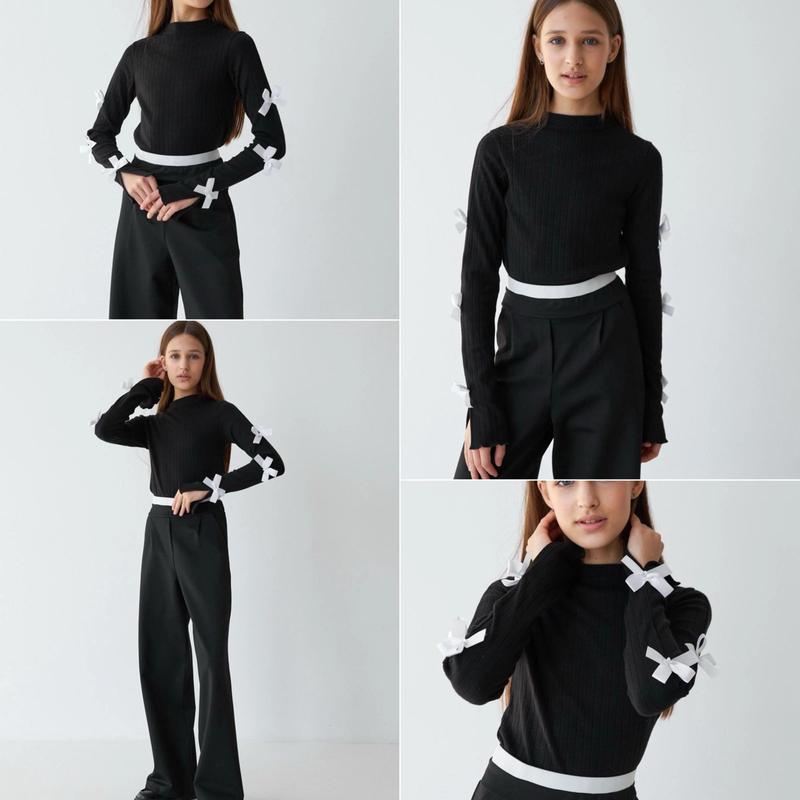 Лонгслив ткань мягкий трикотаж хорошего качества, хит сезона - трендовые бантики. Замеры-длина/пог/рукав 134-39/30/55 140-40-32/56 146-43/34/60 152-43/36/62 158-45/37/64 164-46/39/66