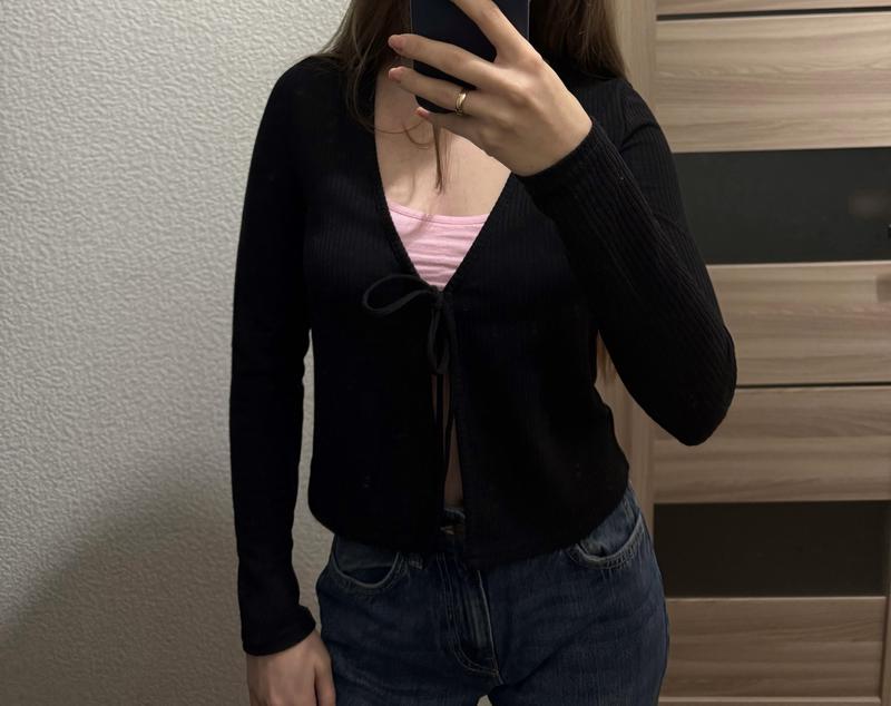 Накидка жіноча в рубчик, чорного кольору. Без пошкоджень, єдине, що немає бірки. Розмір XS/S
