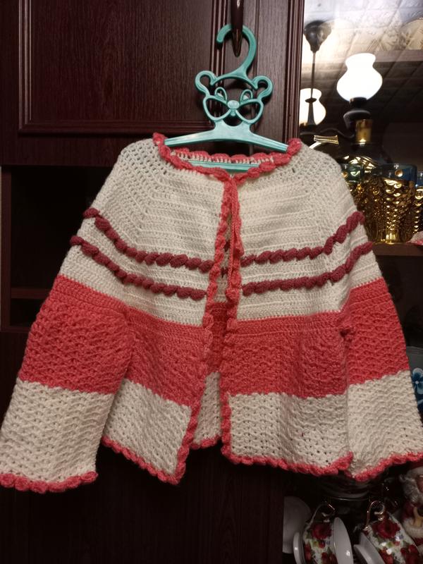 Красива, незвичайна, оригінальна кофточка на принцесу. Вік 3-5 років залежить від якої крихітки. Стан ідеальний, носиться чудово, м'яка. Спереду на повітрочках. Колір в ідеалі, не запрана, не закашлатаний. Товар пересилаю Новою й Укріплятою.