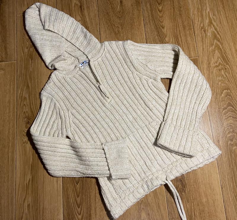 Дитяча кофта бежевого кольору, але підходить і на дорослого з маленьким розміром, кофта з капюшоном Довжина рукава від плеча - 55см Довжина рукава від шиї - 63см Плечі - 40см Ширина виробу - 43см Довжина виробу - 54см Кофточка тягнеться!