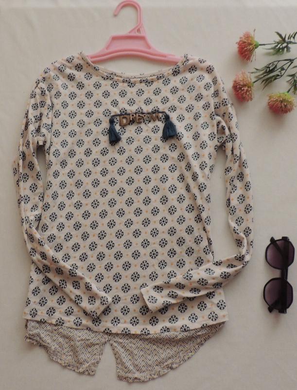 Дуже красива блуза букви треба відпороти все інше в прекрасному стані передня частина футболка блузка етикетка зрізана виглядає на 150 см лінія плеча спущена весь рукав від горловини 64 см довжина по спинці вдвоє по самому довгому клину 64 см в по боковому шву орієнтовно десь 53 ширина під руками 42 тягну до 50 етикеток немає жодних . але виглядає на розмір 12-13 років.