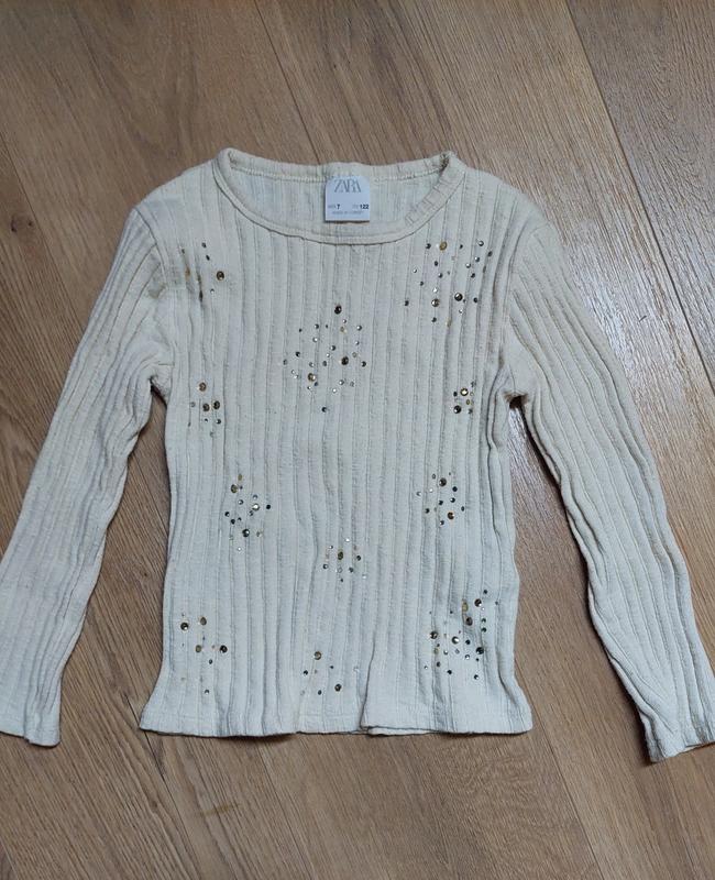 Дитячий светр у рубчик зі стразами. Довжина 37см, ПОГ 28см, довжина рукава від плечей 36см. Без катишек, стан гарний.