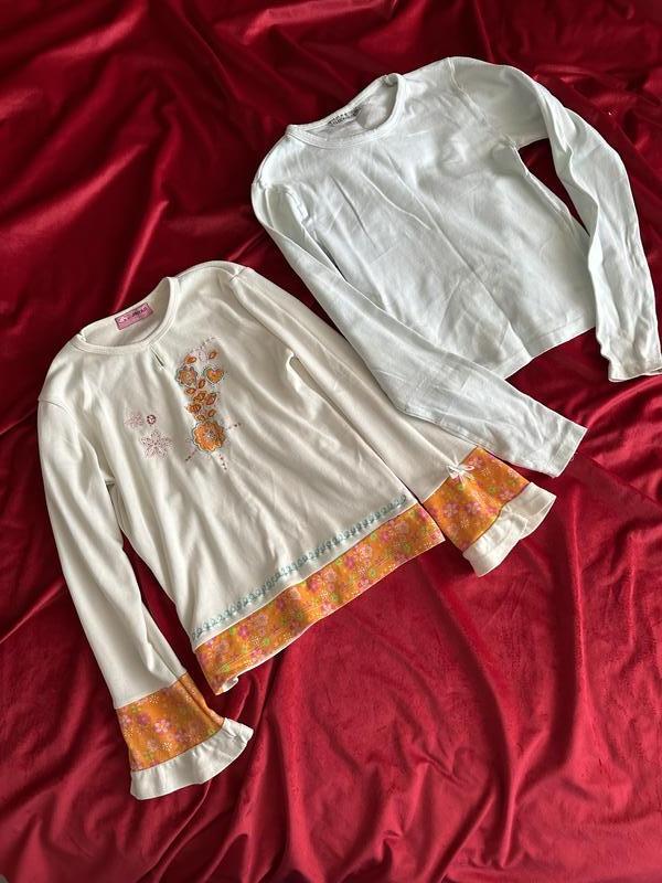 Дитячі домашні кофти для дівчинки/ Підійде на 8-12 років орієнтуйтесь по замірах/ Довжина принтовоі 51 см/ Плечі 33 см: Рукав 54 см/ Пог 39 см/ Пот 38 см/ Знизу 40 см/ Довжина білої 47 см/ Плечі 33 см/ Рукав 56 см/ Пог 39 см/ Пот 33 см/ Знизу 36 см/ З нюансів-плями на фото вказано,у ціні враховано/ Продається без повернення/