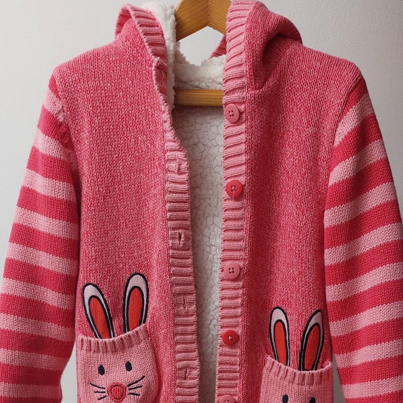 Теплий светрик-курточка з ґудзиками та капюшоном. Стан нового, на дівчинку (4-5 рочків).