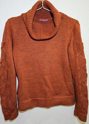 Свитер женский, оранжевого цвета с красивым воротником. Теплый и приятный к телу. Размер: М; S. Замеры указаны на фото. Если есть вопрос обратитесь в личные сообщения.