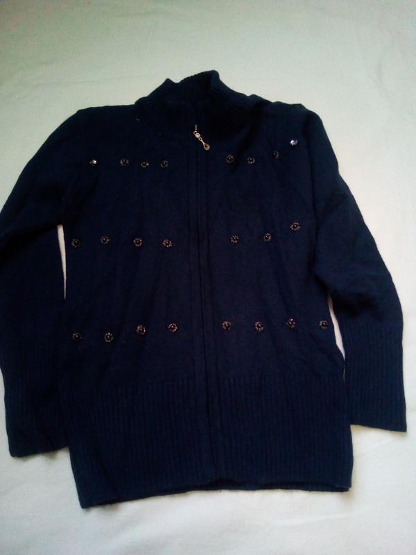 Нова з етикеткою. На 9-10 років, на блискавці, квіточки з бісеру. Довжина - 53см НОГ-39см рукав від плеча - 49см Дивіться також інші мої оголошення) поповнення товару))))