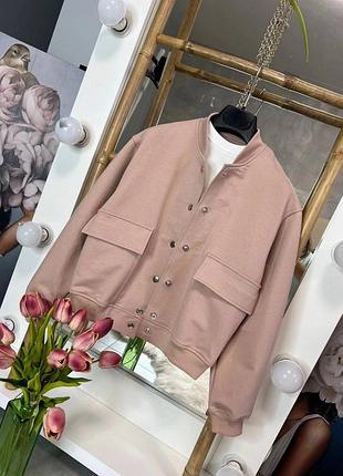 Тканина двухнитка,манжет рібана, надзвичайно приємний на дотик, бомбер на кнопках з накладними кишенями! Якість чудова! Довжина бомбер/рукав/п********** 146-52/65/47 152-54/68/48 158-56/70/50 164-57/71/53
