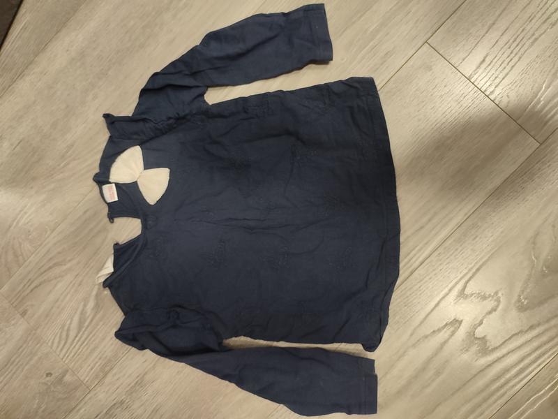Детская кофточка Zara, размер 98 Темно-синего цвета, есть рисунки бабочек по кофтке нитками в тон кофты, сзади пуговица.