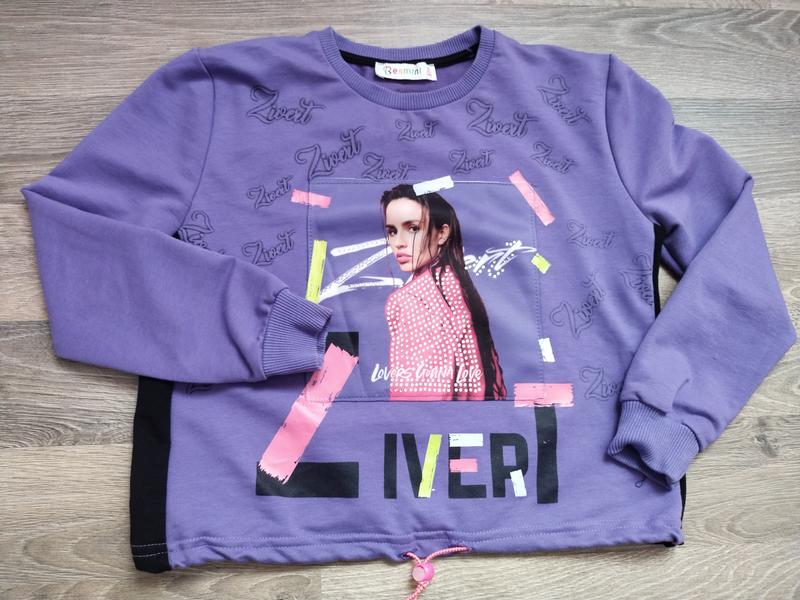 Кофточка для дівчинки в прекрасному стані, дуже гарна та стильна. Укорочений фасон. Дуже гарна. Заміри на фото, орієнтуватись по них. Пише розмір 140 на ній.