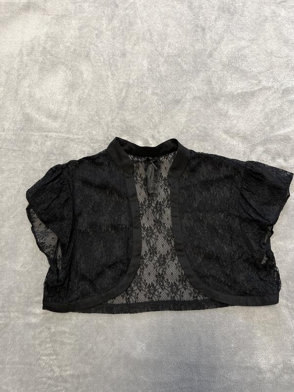 Нарядна красива накидка, болеро, на дівчинку приблизно 6-9 рочків. Нажаль етикетки з розміром немає. Без нюансів, стан ідеальний. Довжина 30 см, ширина в грудях 35 см.