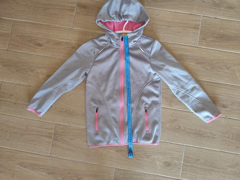 Детский софтшел водоотталкивающий на флисе. Есть светоотражающие элементы. Кофта в хорошем состоянии, теплая. Замочки все работают.