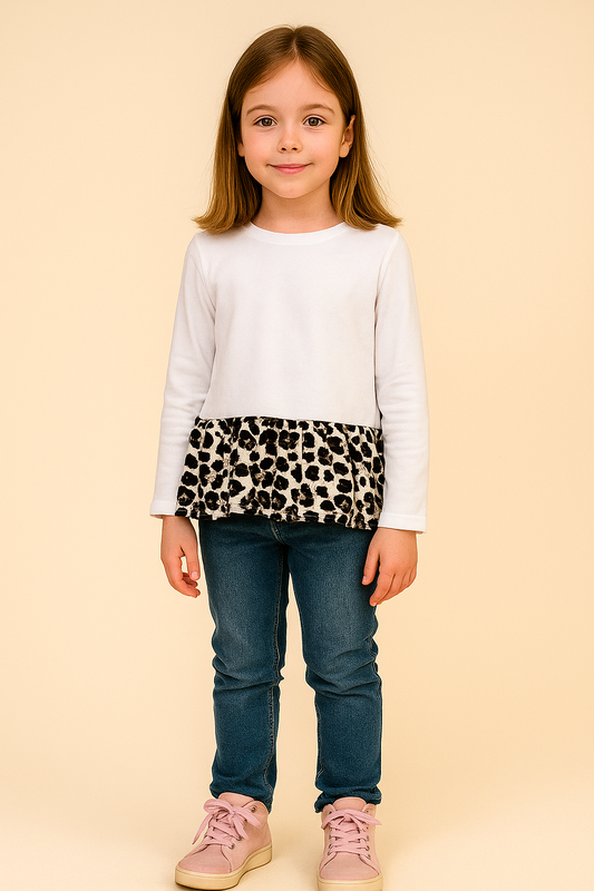 Кофтинка для дівчинки на вік 9 років (134см), від бренду Shein, білого кольору з вставкою леопардового принту.