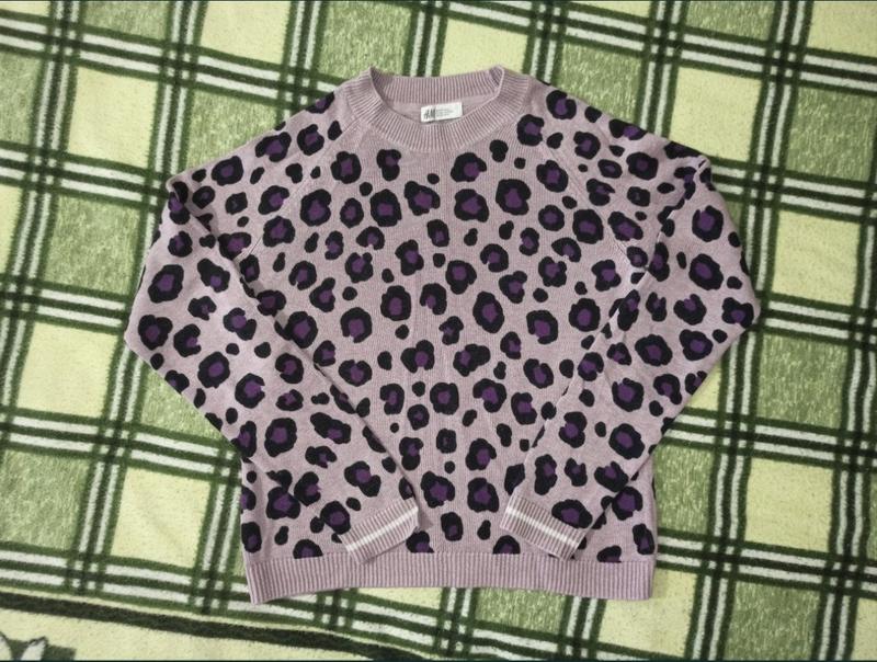 Тепла кофта для дівчинки. Фіолетового кольору з леопардовим принтом. На зріст 170 см.