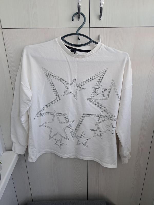 Кофта оверсайз в гарному стані. Спущені плечі. Турецький виробник. Виміри: Довжина- 55 см; Під руками- 51 см; В плечах- 60 см; Рукав- 42 см; Склад: 95% котон та 5% еластан. Зріст 152 см.