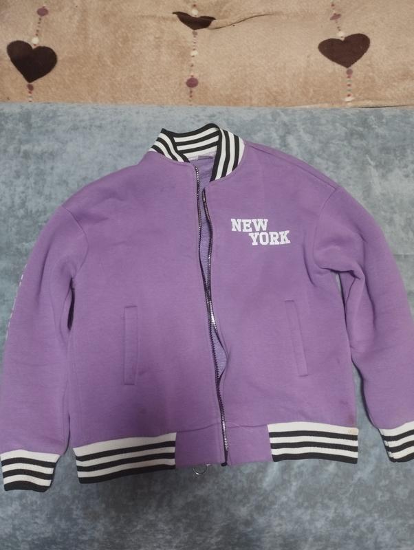 дівчачий бомбер New York фіолетового кольору є дефекти на рік 10-9