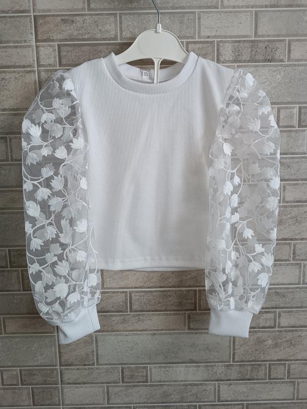 Дуже гарна нарядна кофтинка🥰🤩 Підійде як до спіднички, так і до штанців😍 Тканина: трикотаж рубчик👍 Рукавчик мереживо💫💫💫 Заміри: р. 122 - довж. 33,5см / пог 29,5см / рукав 43см р. 134 - довж. 37см / пог 32см / рукав 47,5см р. 146 - довж. 41см / пог 35,5см / рукав 52,5см Допустиме відхилення +-1см До кофтинки можна разом придбати спідничку, як на 2 фото