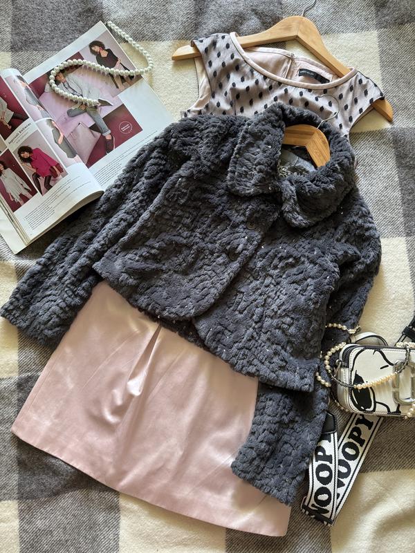 Дитяча шубка з еко-хутра графітового кольору 10-11 років 100% поліестер ПОГ 39 см Довжина 40 см Довжина рукава 55 см