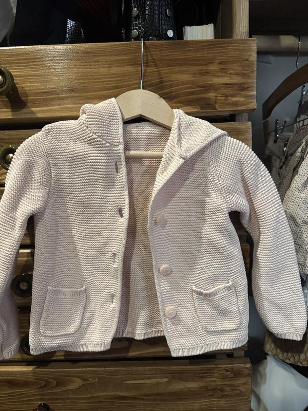 Гарна ніжна вʼязана кофтинка з капюшоном.