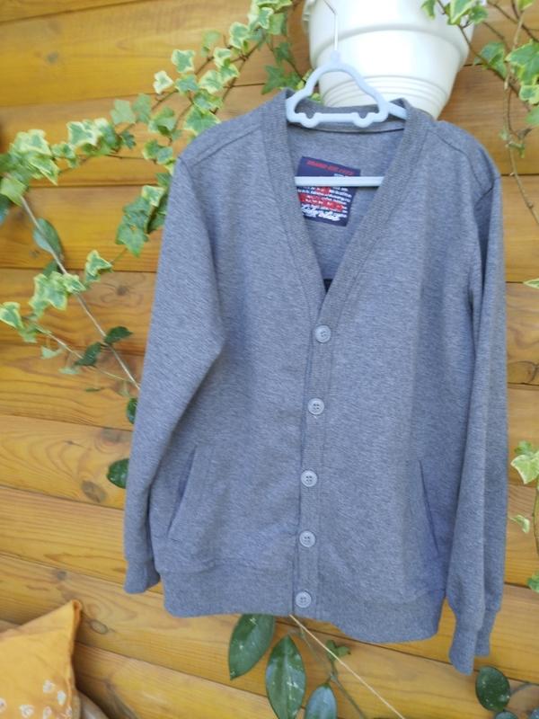 Продам детскую школьную кофту серого цвета б/у в очень красивом состоянии длина по спине 52 см, длина рукава от плеча 50 см, два кармана.