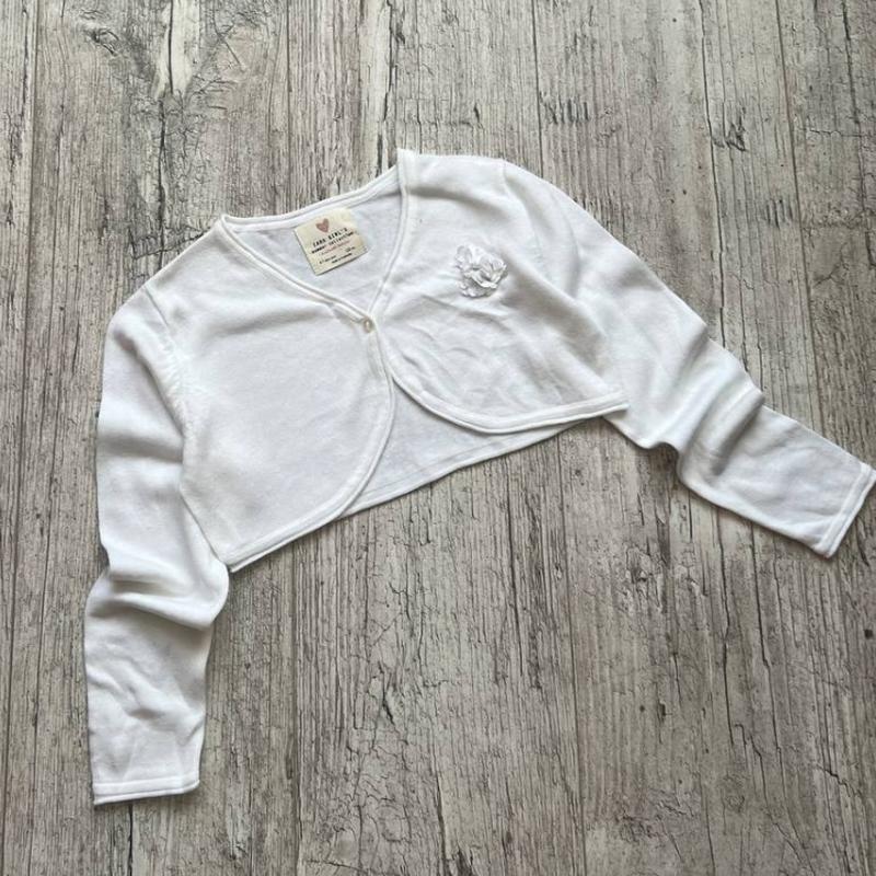 белоснежное болеро от zara на 6-7 лет идеальный стан ,як нове состав коттон длина 23,пог 35, рукав от плеча 43