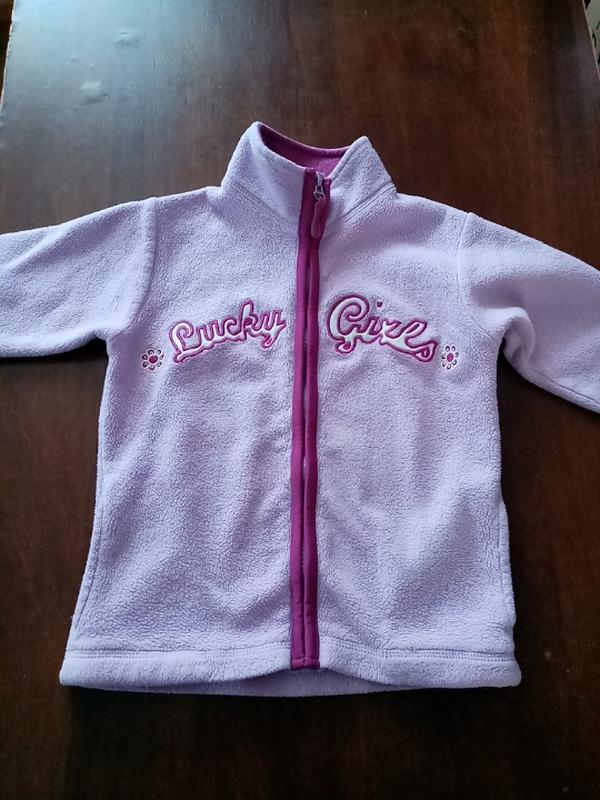 Розмір 34,36 ( 9-11 років), ног 35, низ 33, плечі 30, рукав 30, довжина 44. Тканина щільна, фліс . Є 2 кармани. Комір стійка.
