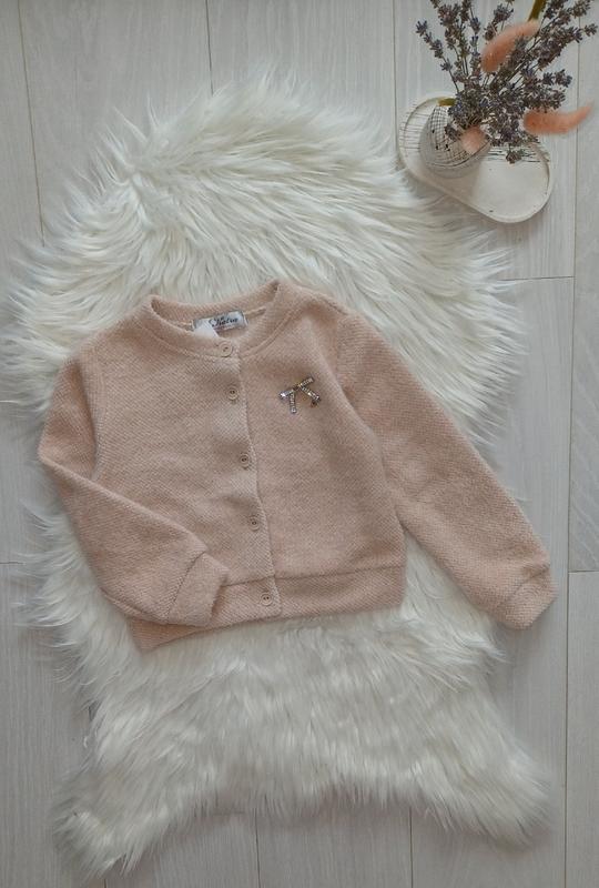 В наличии Стильная и практичная кофточка застегивается на пуговицы. Брошь снимается идет в комплекте, может отличаться. Ткань - Альпака, теплая и мягкая. Хорошее качество!конф длина/рукав/пог 122 - 40/42/36 128 - 42/45/37 134 - 44/45/39 140 - 45/48/40 +- 1-2 см