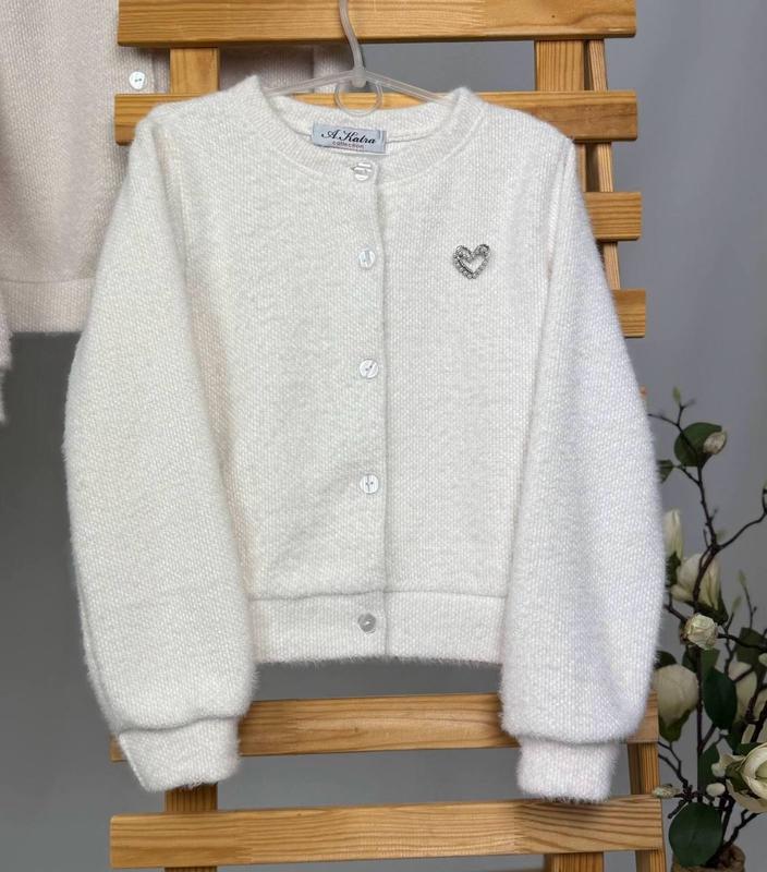 Стильна та практична кофтинка застібається на гудзики. Брошка знімається йде в комплекті, може відрізнятися. Тканина - Альпака, тепла та м'якенька. Гарна якість! Розмір 122-140
