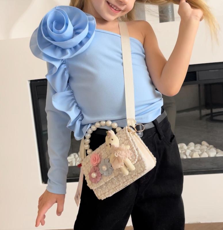 голубенька кофточка на один рукав з обʼємною трояндою, дуже стильна. В ідеальному стані