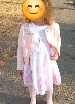 Стильная кофточка нежного розового цвета. Состояние новой. По наборке 114 идет, очень планомерно, одевали несколько раз с 3-6 лет.