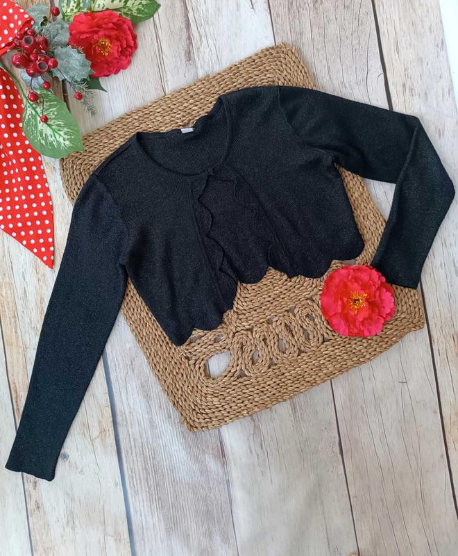 57 💥 блестящая классная кофта болеро, состояние идеальное, мелкий блеск 📏8/9 лет, длина 34, пог 40, рукав 52