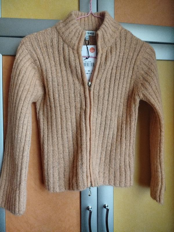 Теплая классная кофта для девочки 6-8 лет - ангора, мохер.. Страна производителя - Корея, бренд - PIPI SHU, светло-горчичная (6-8 лет), вязка - фигурная резинка, шерсть, ангора, мохер. Замеры: Длина - 46, длина рукава - 48, ворот - 6, плечо - 9, ПОГ - 39, ПОТ - 36, ПОБ - 38. Кофта прямая, не длинная, стильная и очень модная, рукав слегка расширен к кисти. Застежка - молния, молния. Покупалась через интернет-магазин Sinsay, новая.