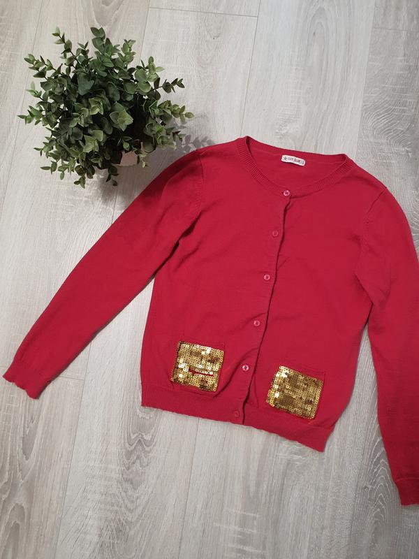 Кофтина для дівчинки з яскравим акцентом у вигляді паєтків на карманах.