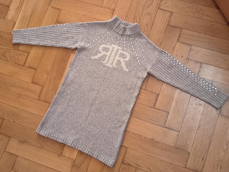 Тепла кофта для дівчинки, River Island, 7-8р, 122-128 см., сірого кольору, оздоблена спереду камінчиками, рукав три четверті. Орієнтуйтеся по моїх замірах, які є на фото в оголошенні .