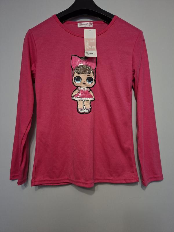 Девчачья розовая трикотажная кофтина с куклой ЛОЛ ; Han.А.М, 13-14 лет, 156 см Плечи пониженные 40 см, ДР 56 см, ПОГ (от подмышек) 44 см, ПОТ 42 см, ПОН 46 см, длина 61 см