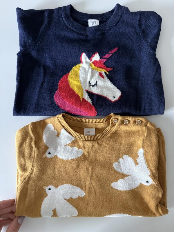 Дві клітини по 225 грн кожна. В дуже хорошому стані, майже не носили. З єдинорогом 92 розмір Gap З пташками 86 розмір H&M За додатковими фото та відео звертайтесь.